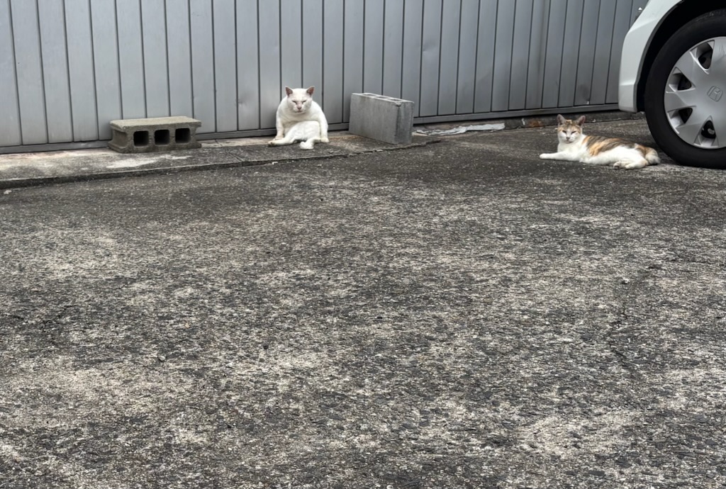 横にいる三毛猫たわちゃん、モテ期継続中です。