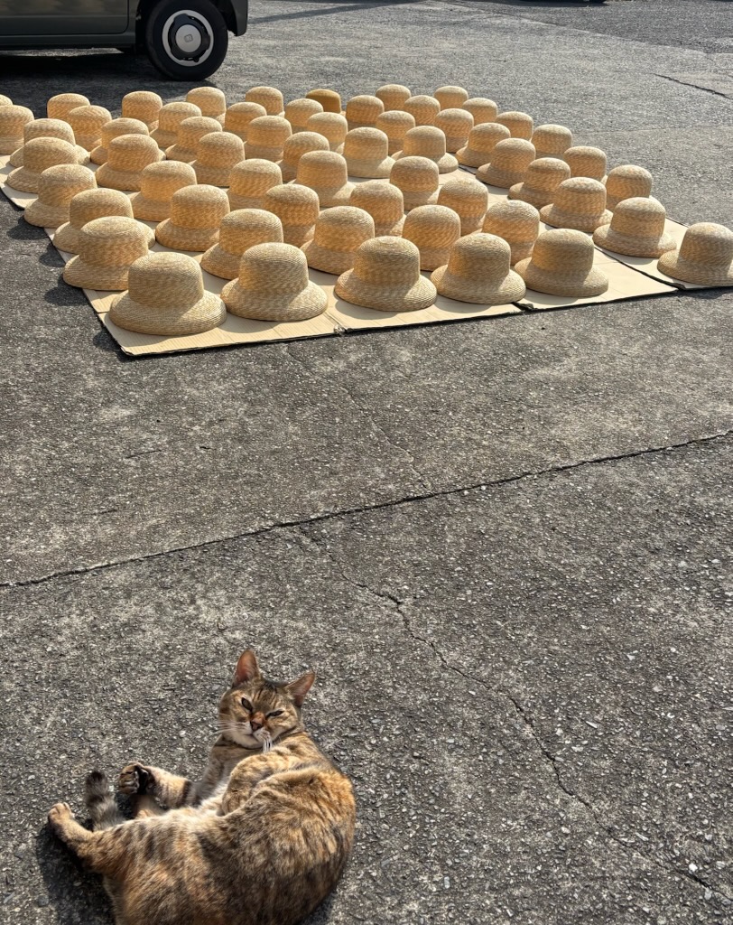 天日干しの麦わら帽子も見てくれているのかもしれません。